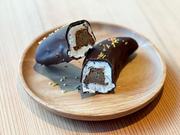 生ベイクで目を引いたのは、「バナナのチョコレート生フィナンシェ」847円。バナナの形をしたチョココーティングをパリっと割ると、中からふんわりクリームとバターの風味豊かなフィナンシェ生地が現れます。バナナの深い甘みと香りが広がる、進化系チョコバナナとしてぜひ味わってほしい一品です。