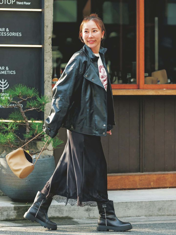 冬終わりから春先まで活躍する頼れるレザー調ブルゾン。ゆったりフォルムが程よい抜けを生み、甘めにもきれいめにもマッチ。さっと羽織るだけで着こなしを引き締める高見えアウターです。