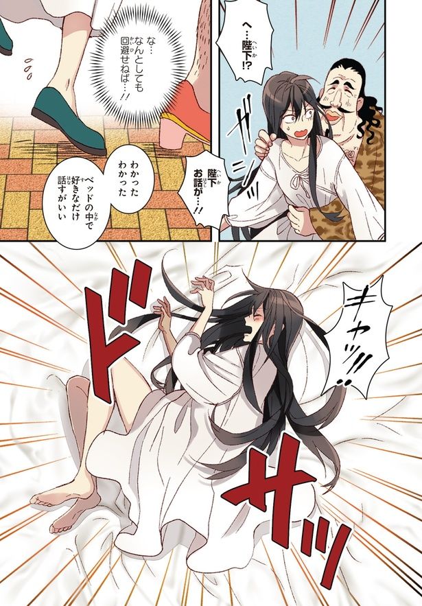 3. ついに皇帝との初夜。抵抗虚しくベッドに押し倒された直後、目の前に信じがたい光景が!/異世界の皇妃④