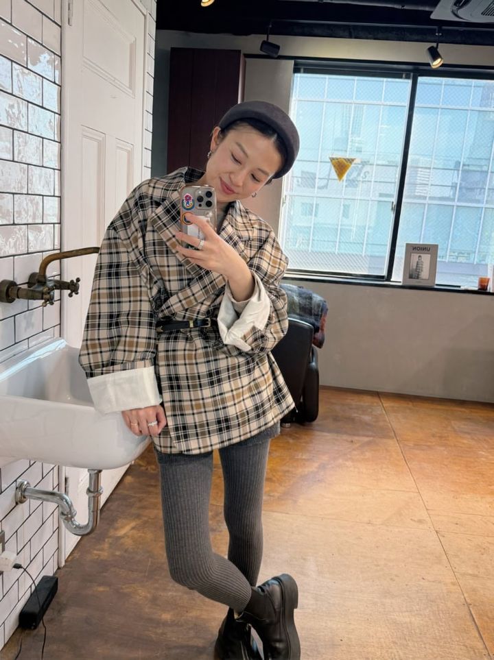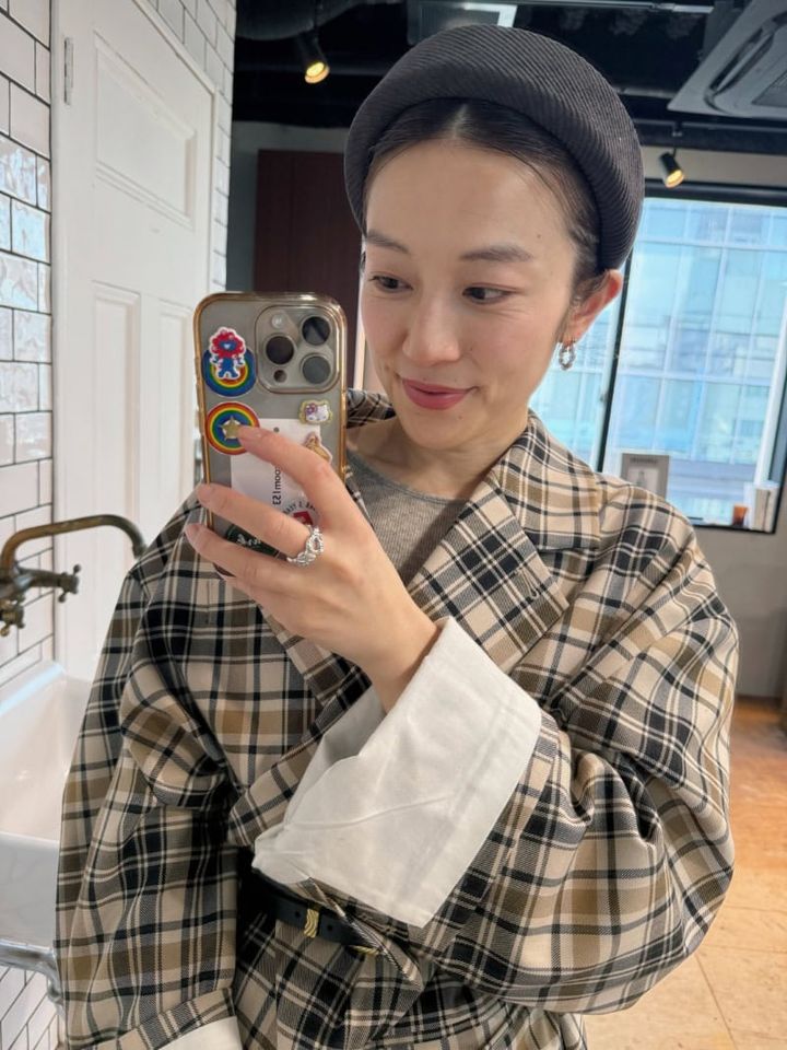 「ビッグシルエットのジャケットは1枚で主役になれるアイテム! ショーパンとあわせ、ベルトでウエストマークすることで、スタイリッシュに。太めのカチューシャやショートブーツを使って、全体のバランスを整えました」(ヘアサロンPARKオーナー・水戸怜子さん)