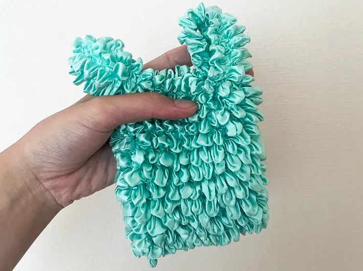 筆者が雑貨店で購入したのは、手のひらサイズのくしゅくしゅした布のようなもの。バッグをそのまま小さくしたような形をしています。