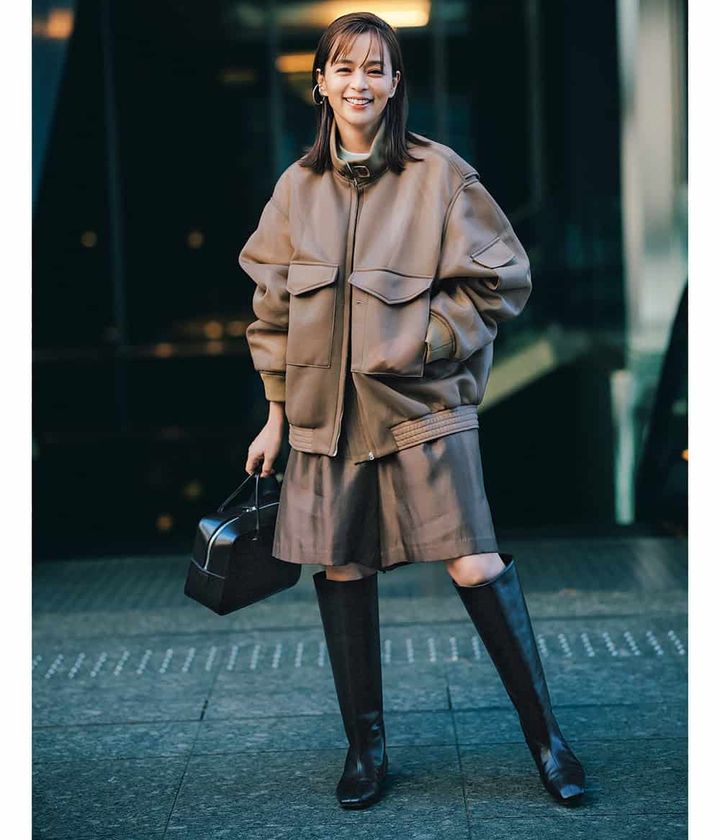 コート¥121,000(タケマル)シャツ¥33,000(トゥモローランド コレクション/トゥモローランド)スカート¥28,600(ツル バイ マリコ オイカワ)バッグ¥95,700 (メゾンヴァジック/ヴァジックジャパン)ブーツ¥60,000 (バナナ・リパブリック)ピアス¥40,700 (ブランイリス/ブランイリス トーキョー)