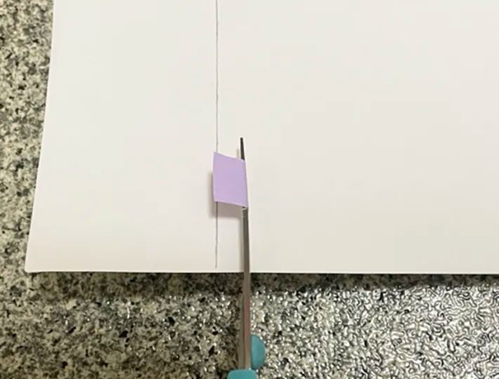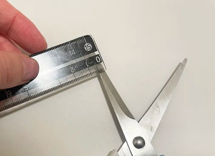 この時、筆者は両端から0.5cmの長さに印を入れておき、ハサミに貼る長さを間違えないようにしておきました。
