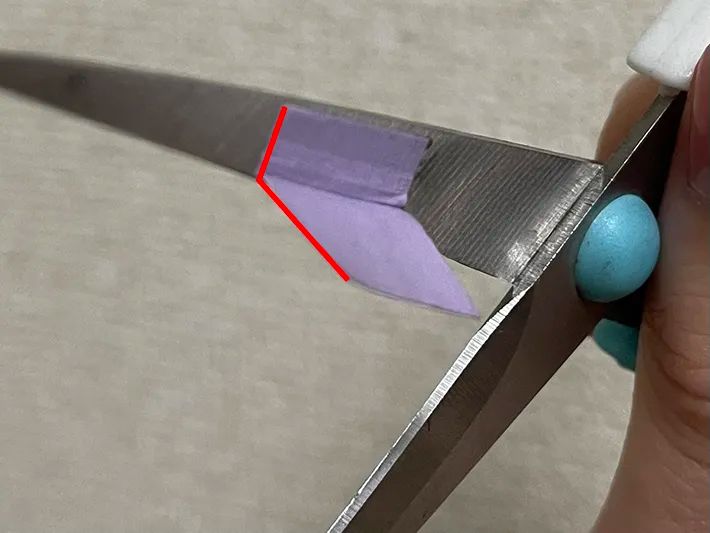 この時、ハサミを完全に閉じてしまうと、マスキングテープも一緒に折れてしまうので、浅めの位置でカットするのがいいでしょう。