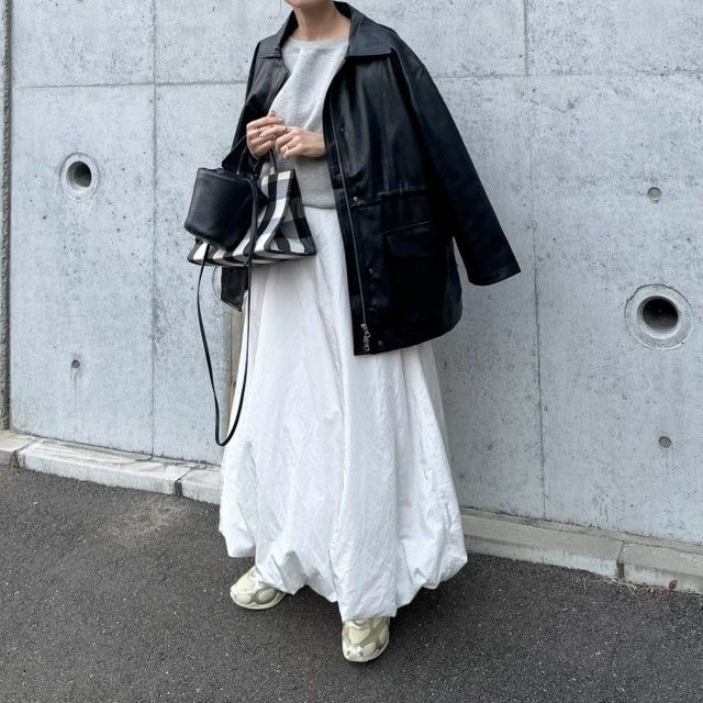 今シーズンも引き続きレザージャケットに注目。狙うべきトレンドデザインは断然オーバーサイズ! ピタッとしていないだけでレザーのハード感が控えめに。カジュアルに着てもラフにはならず、大人の着こなしにも馴染むのが今季の特徴です。