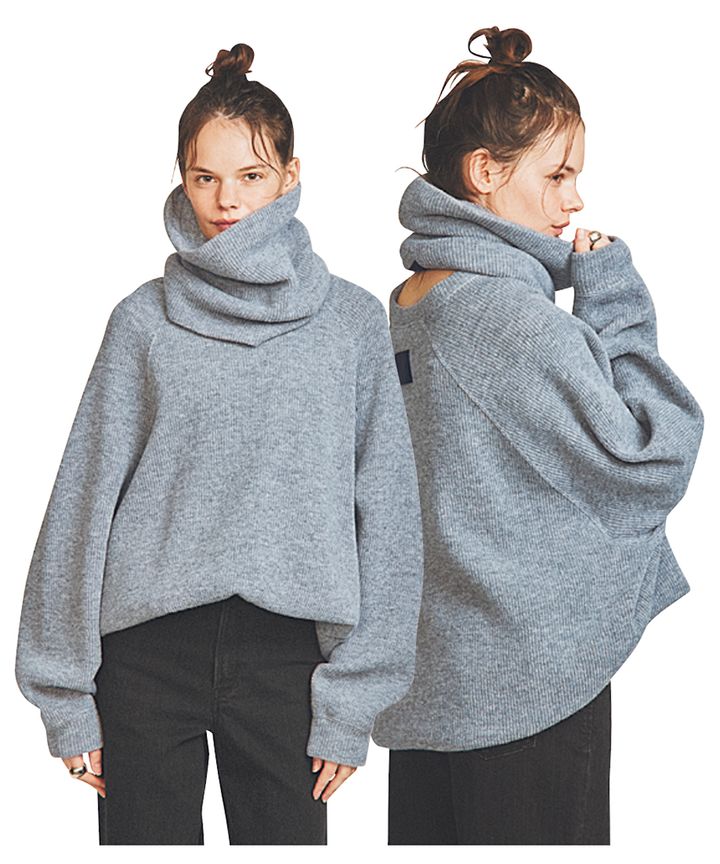 グレーネックウォーマーセットニット/COGTHEBIGSMOKE(DEUXIEME CLASSE 青山店) スヌードとワイドニットのセット。ドルマンのようなスリーブにゆったりとした身ごろはスウェット感覚で過ごせる軽やかな着心地。前後差のある着丈で、使いやすい色で主役になれるシルエット。