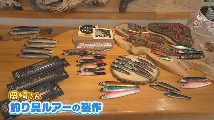 店主の岡崎さんが、釣り具のルアーを製作。