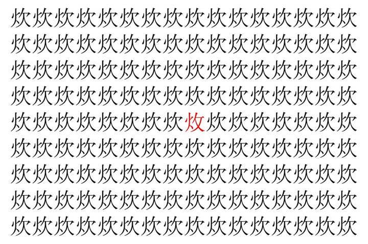 2. 【脳トレ】「炊」の中に紛れて1つ違う文字がある!?あなたは何秒で探し出せるかな??【違う文字を探せ!】