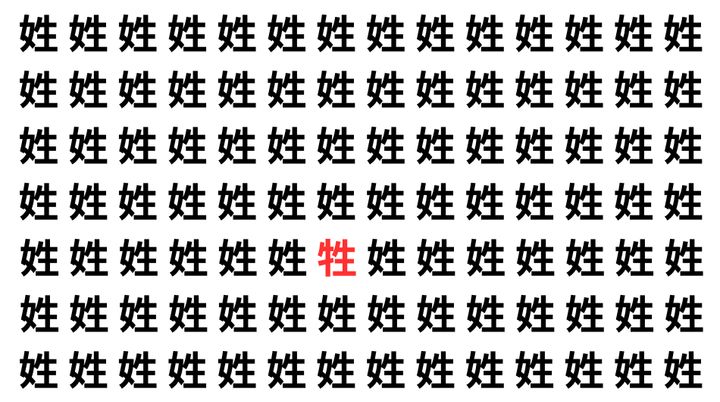 たくさんの「姓」の中に、よく似た別の漢字が1文字だけ隠れています。