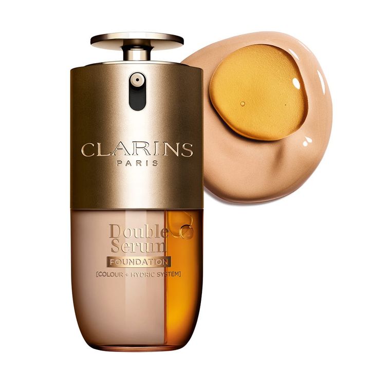 クラランス製品の多くに配合されているのが、肌表面に皮膜を作り、ちり・ほこりや乾燥から肌を保護するのと同時に、スキンケア効果でも肌を整える独自の“アンティポリューション コンプレックス”(※)。アイコンの「ダブル セーラム」から誕生したダブルのフォーミュラによる2相式の新美容液ファンデにも、もちろん採用されています。テカリ感のない生き生きとした艶感とともに、日中の肌を美しく演出。