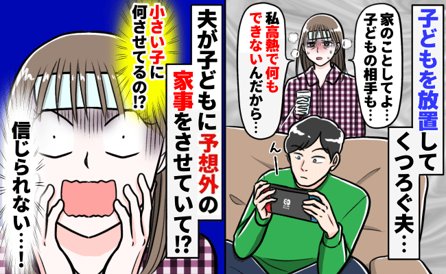 高熱の妻を寝かせず、質問攻めの夫。あげくにゲーム三昧で…唯一頼んだ家事をしていたのは7歳息子!?