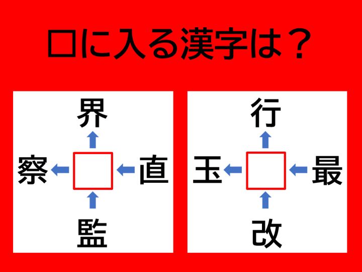 【漢字パズル】脳トレに挑戦!□界、□察、監□、直□、□に入る漢字は何?