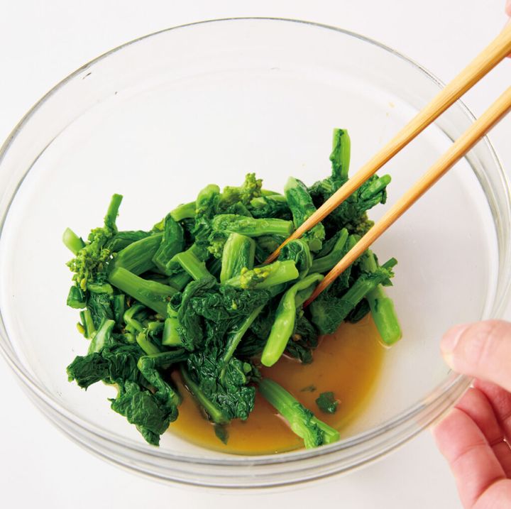 ゆでてあえるだけのシンプルレシピですが、ゆで加減がおいしさのコツ。味がピタリと決まる辛子じょうゆと、菜の花のゆで方もいっしょにご紹介します。