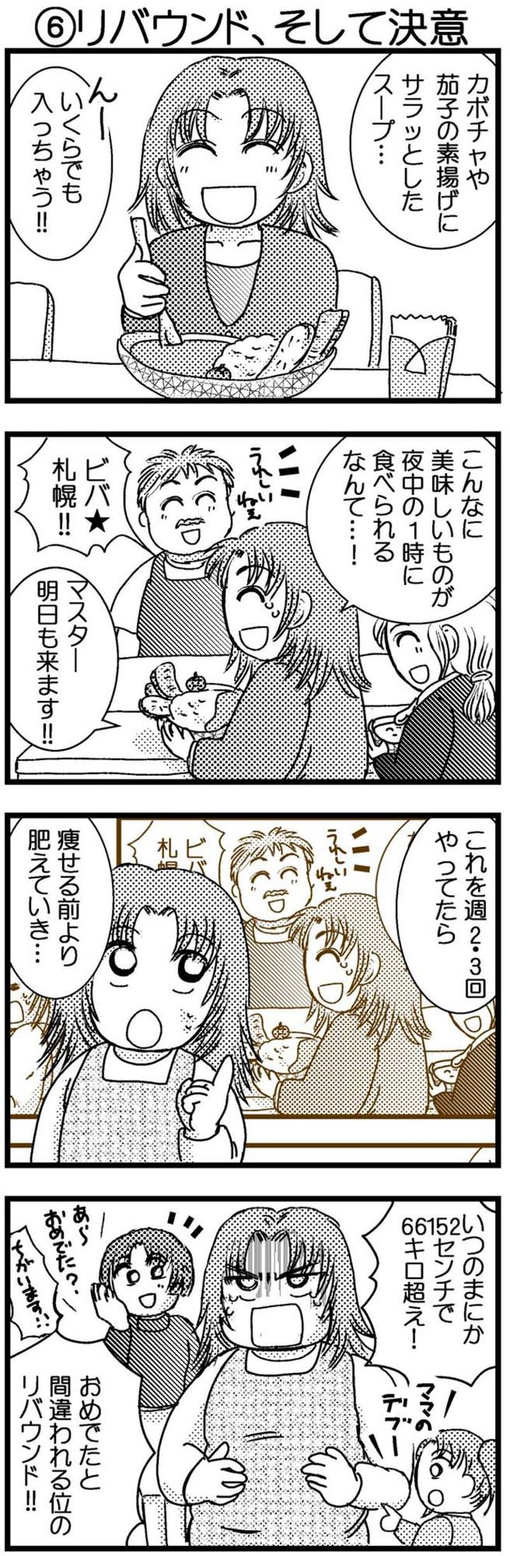 49歳で69㎏から13㎏やせに成功したマンガ家・石川きよにゃさんの「ガチすぎる」ダイエット実践マンガ『アラフィフ脱デブ日記』。 Webサイト「オトナサローネ」で累計2000万PV超を達成した『脱デブ日記』が、ゆうゆうtimeでも好評連載中。今回は、産後ダイエットに成功した5児の母・まみさん編をお届けしています。 ※2025年7月に配信したマンガを、好評につきリバイバル配信しています。