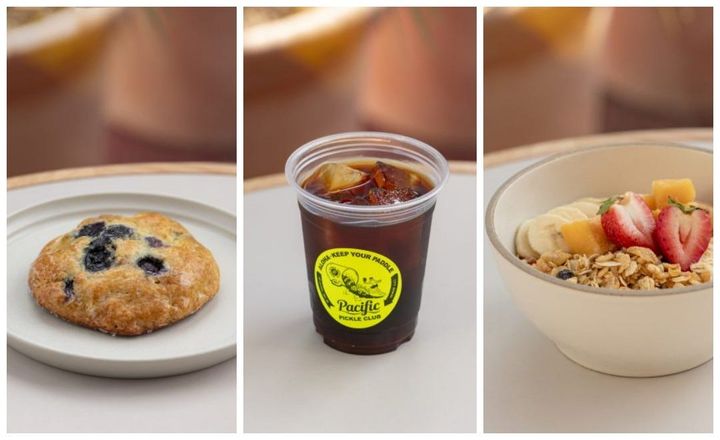 カフェは、鎌倉七里ガ浜で人気を集めた海沿いの「Pacific DRIVE-IN(パシフィックドライブ・イン)」の姉妹店だ。トロピカルなドリンクとフレッシュなハワイアンフードが味わえる。店内にはアーティストのFACE氏がグラフィックを手がけるピックルボールのグッズやオリジナルウェアを取り揃えるショップ、レンタルサービスもあり、初心者でも気軽にスポーツを楽しめる。
