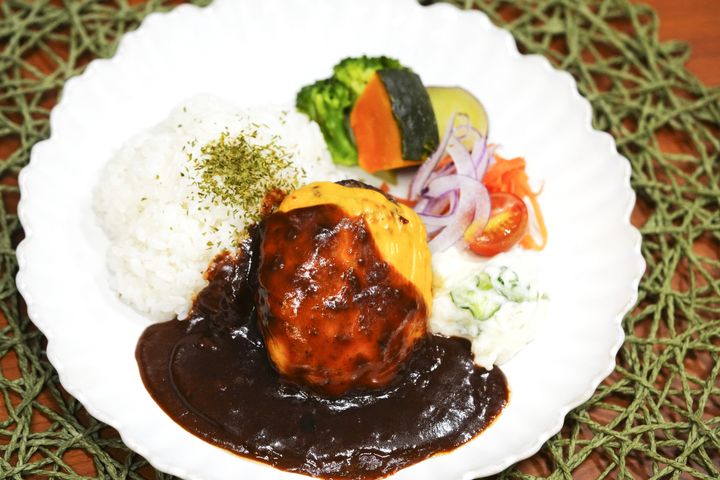ここへ訪れたら食べておきたいのは、牛と豚を絶妙なバランスで配合しうま味をぎゅっと閉じこめた「手ごねハンバーグプレート」。濃厚なデミグラスソースと合わせれば肉の芳醇な味わいが口いっぱいに広がる。