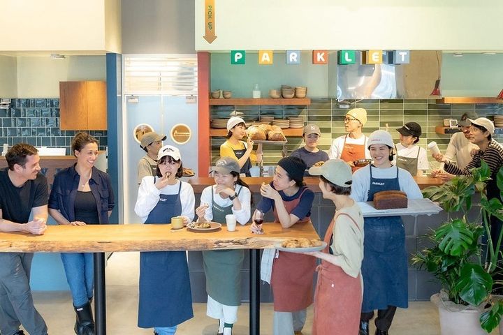 入って右手には自家製の焼き菓子やアイスクリームのほか、コーヒーやクラフトビール、ナチュラルワインを提供する「パークレット キオスク」が。中央には ベーカリー「パークレット」があり、もっちりとした生地とほどよい酸味が病みつきになるサワードゥブレッドに多彩な具材を乗せた、人気の「オープンサンドイッチ」が味わえる。