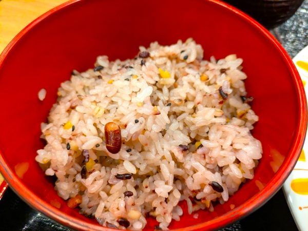 ご飯の種類は、白米か十五穀米かを選べます。ご飯のサイズも、大・中・小から選べます。ご飯とお味噌汁はおかわり自由です。すごいっ。るなるなは普段、うちでは食べない十五穀米を選びました。