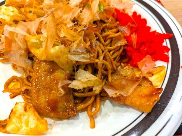 豚肉とキャベツをたっぷりのソースで絡めた大満足な一皿です。お腹いっぱいです!夜はもっとボリューム満点の大人数で食べるメガ焼きそば(1kg)や焼きナポリタンにお好み焼きもあるそうです。いいですね~。