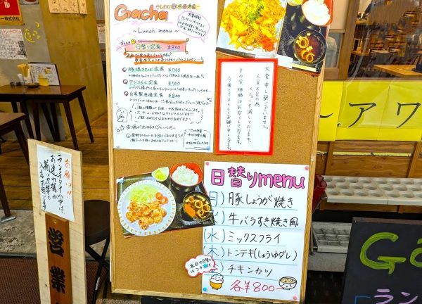 日替りランチの他にも、豚焼きそば定食700円、アジフライ定食700円、自家製唐揚定食800円があります。夜のメニューを見ると、豚焼きそばは780円でした。豚焼きそばがお得ですね~。大阪人、るなるな~。