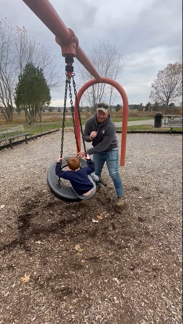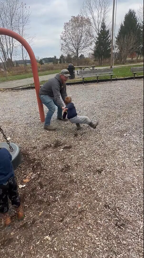 3. いっぱい揺らしてもらったタイヤブランコから降りたら・・。フラフラして立っていられなくなっちゃった!!【アメリカ・動画】