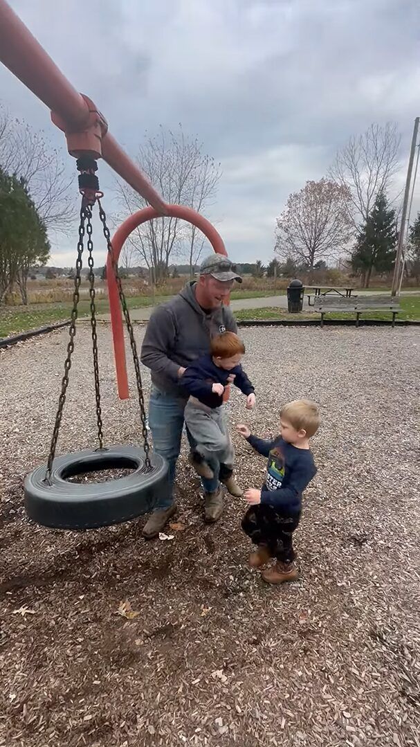 いっぱい揺らしてもらったタイヤブランコから降りたら・・。フラフラして立っていられなくなっちゃった!!【アメリカ・動画】