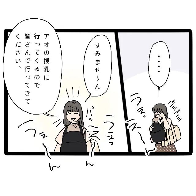 泣いちゃダメ。ここで泣いても何にもならない。私はさっと涙を拭い、何事もなかったかのように表情を切り替えると「すみませ~ん!アオの授乳に行ってくるので、皆さんで行ってきてください」と、前を歩く義家族とコウタに声をかけました。
