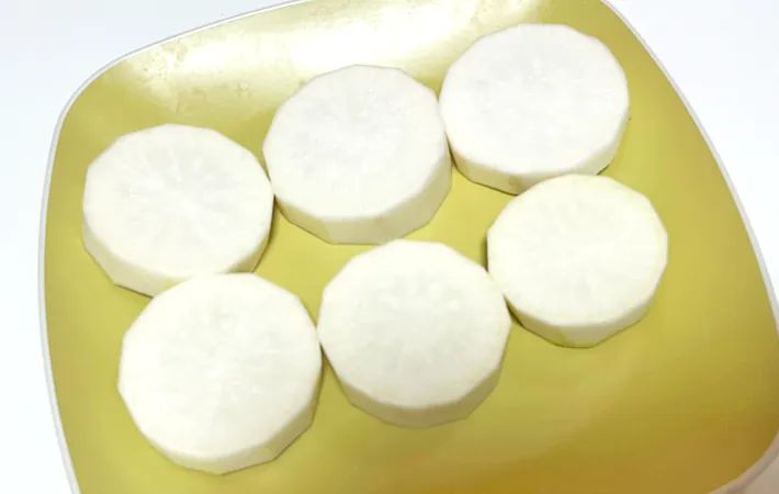 まず、大根を洗って1.5cm程度の厚さで輪切りにします。