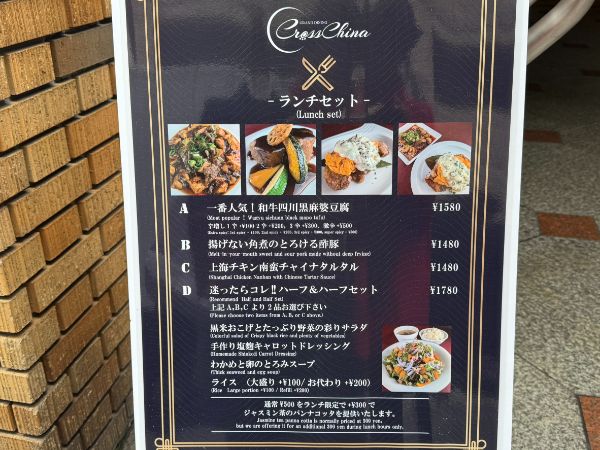 Cross China(クロスチャイナ) 住所:大阪市中央区東心斎橋1-19-8 日宝プロムナード心斎橋 1階 (大阪メトロ心斎橋駅から徒歩5分) 電話番号:06-6282-7351 営業時間:11:00~14:30 18:00~22:30 定休日:火曜・第三水曜 駐車場無し https://www.instagram.com/crosschina2025