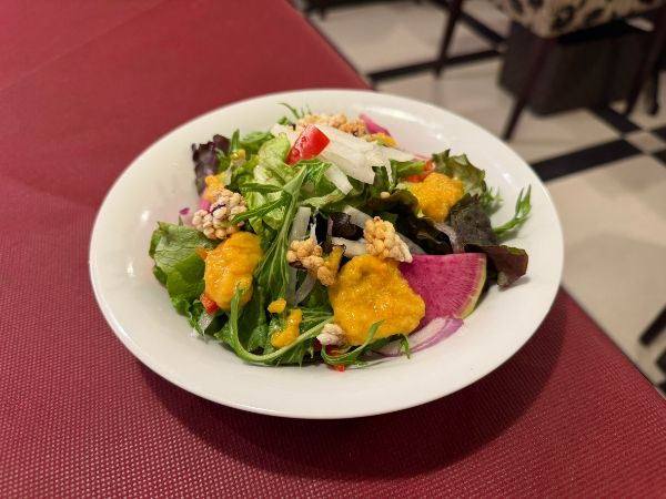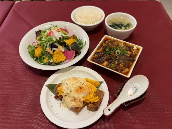 こちらもご飯泥棒でたまりません。どのランチにもサラダとご飯、中華スープがつきます。サラダにはおこげが入っていて、ドレッシングには人参をすりおろしたものも入ってたりします。現代人に不足しがちな野菜がおいしくたっぷり食べられる満足感のあるランチセットになっていました。