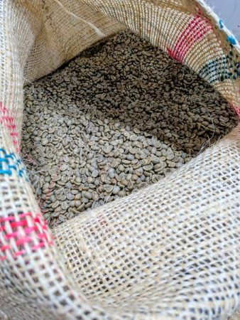 緑色が混じった薄茶色の生豆。毎週入荷するそうで、多い時には約600kg入荷します。常に新鮮な生豆を使用しています。ブラジル、コロンビア、タンザニア、インドネシア、グアテマラなどから輸入されます。輸入された状態でお店に届くので、状態の悪い豆が混入している場合があります。手作業でひとつひとつ丁寧に取り除いていきます。