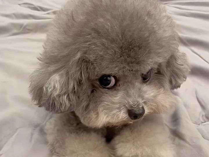 グレーのふわふわな毛並みが愛らしい犬さん。