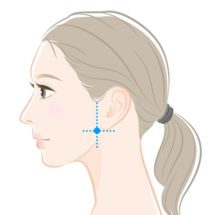頬のたるみの原因は、硬くなった咬筋(こうきん)です。食いしばりによる筋肉の緊張を和らげるツボがおすすめです。むくみを解消し、すっきりとした印象に導きます。
