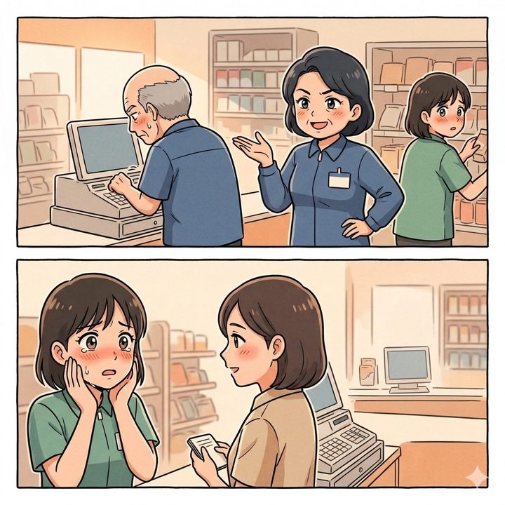店長やオーナーの前では、テキパキと動く「理想のベテラン」を完璧に演じる彼女。しかし、ひとたび彼らの目が離れれば、バックヤードは彼女の独壇場と化しました。