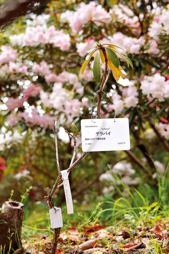 シャクナゲは世界で4000~5000種あるとされ、木に咲く花としては最も種類が多い。木と花の大きさは比例する。平地でこれだけの品種が見られる場所は珍しい。 撮影=高嶋克郎