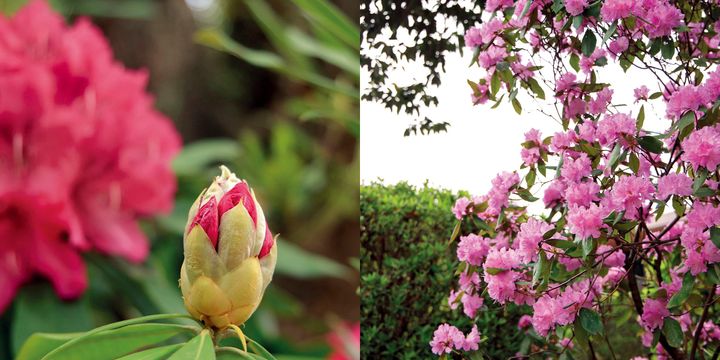 シャクナゲは「花木の女王」といわれ、気品高い姿で人々を魅了してきました。神戸ではおもに清楚な趣の日本シャクナゲを、京都では華やかな西洋シャクナゲを観賞。その違いもお楽しみください。