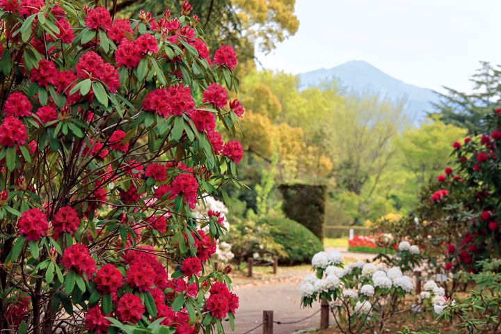 約24ヘクタールの広大な敷地に、約12000種類もの植物が植栽されている日本最古の公立植物園。一年を通してさまざまな花が見られますが、正門から東へ広がる洋風庭園の一角を「西洋シャクナゲ園」が占めており、4月から5月にかけて赤、白、ピンク、黄色など色とりどりのシャクナゲが順々に満開となります。