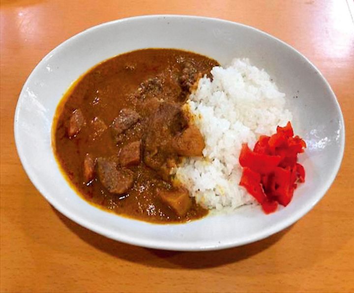 園のほぼ中央に位置する「森のカフェ」では、喫茶や軽食を楽しめる。京丹後地方の鹿肉を使った「鹿カレー」770円。春夏は目の前に芝生が広がるテラス席も気持ちいい。
