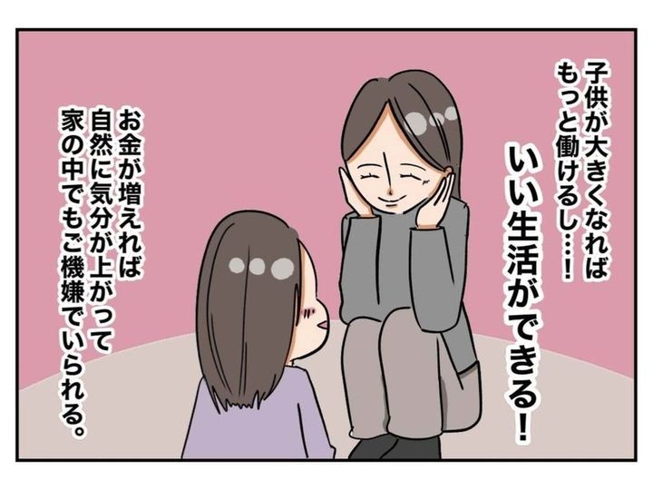 夫の収入だけでは生活が苦しいため、妻・メイカも働き始めました。ところが、子育てしながら働くのは、想像以上に大変でした。メイカは再び、不満を募らせます…。