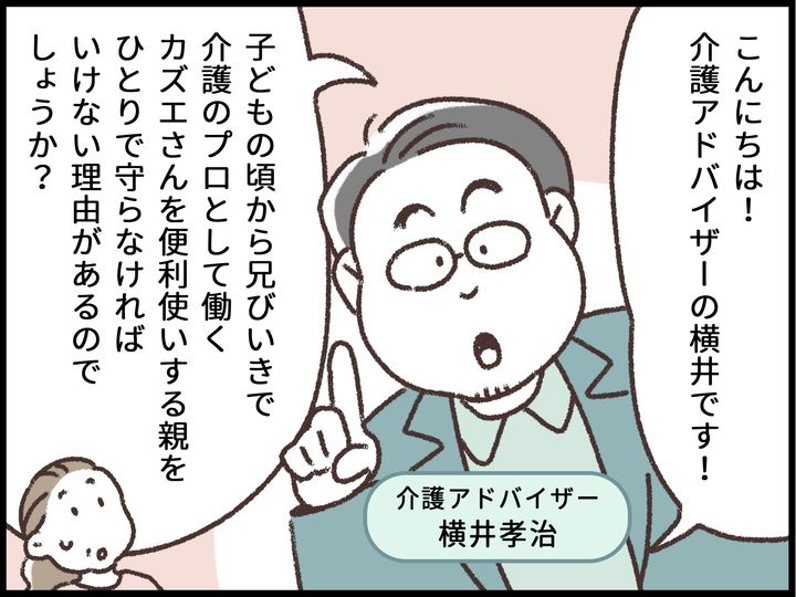 介護福祉士の私を何かにつけて“プロだから”とこき使う両親と兄。これからやってくる両親の介護も押し付けようとしてくる。一体どうしたらいいのか……。50代女性の悩みに、介護アドバイザーの横井孝治さんが寄り添います。