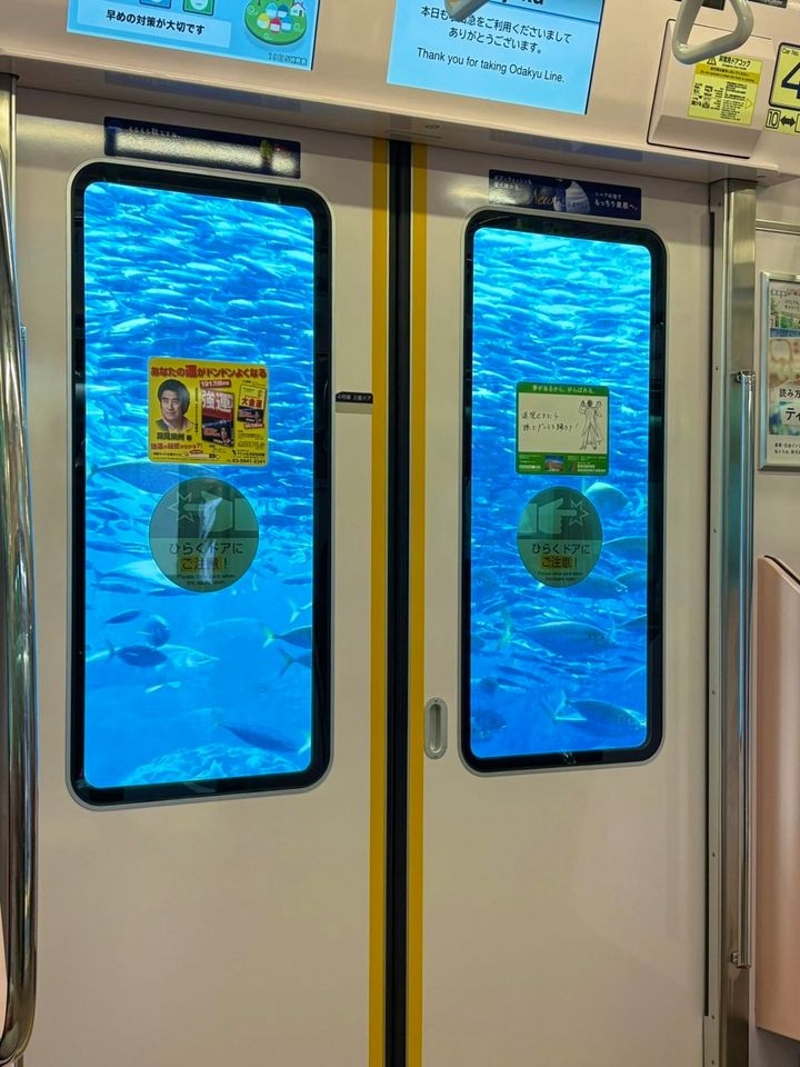 この記事ではX(旧Twitter)でバズった投稿を紹介します。今回紹介するのは、江ノ島さんぽちゃん(@enoshimasanpo)の投稿したお写真です。街中などで目にする広告。中には一際目を引くものもあり、商品などを選ぶ大切なきっかけになりますよね。江ノ島さんぽちゃんは、小田急線藤沢駅1番ホームの電車内から撮影した写真を投稿。まるで海の中にいるような、幻想的なお写真が話題を呼びました。