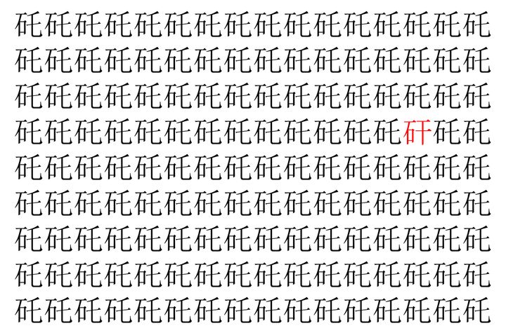 2. 【脳トレ】「矺」の中に紛れて1つ違う文字がある!?あなたは何秒で探し出せるかな??【違う文字を探せ!】