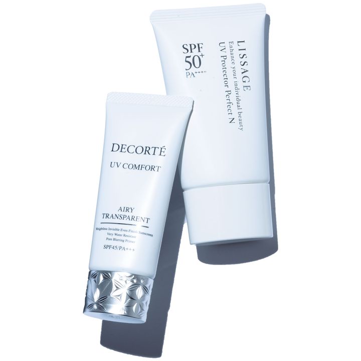 左:UV コンフォート エアリートランスペアレント SPF45・PA++++ UV耐水性★★ 30g ¥4,950 ※2/16発売()右:リサージ UVプロテクターパーフェクトN SPF50+・PA++++ UV耐水性★★ 50g ¥3,630 ※3/7発売()