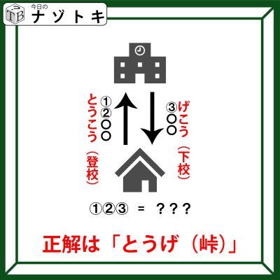 家から学校に向かっているもの。それは「とうこう(登校)」です。よって学校から家に向かっているものは「げこう(下校)」です。確かに〇の数とも一致しますね。
