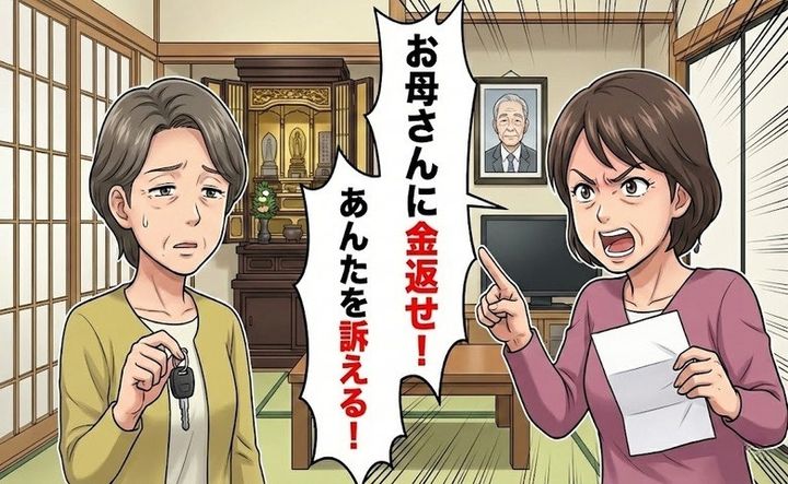 それまで妹2人は、「姉ちゃんにばかり迷惑かけて悪い」と言っていたのに、車を買ってもらったら、一番下の妹が父の1周忌のときに私に向かって「なんであんたが車を買ってもらったの? お母さんに金を返せ」と怒鳴りました。ものすごいマシンガントークで、怖いので逃げて帰るしかありませんでした。
