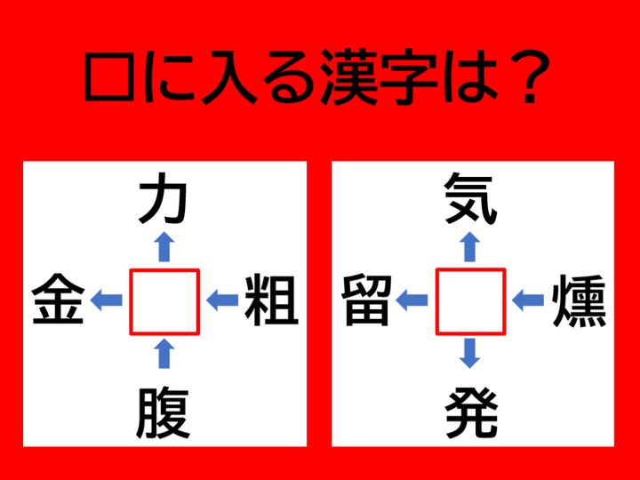 【漢字パズル】脳トレに挑戦! □力、□金、腹□、粗□、□に入る漢字は何?