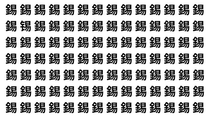 たくさんの「錫」の中に、よく似た別の漢字が1文字だけ隠れています。