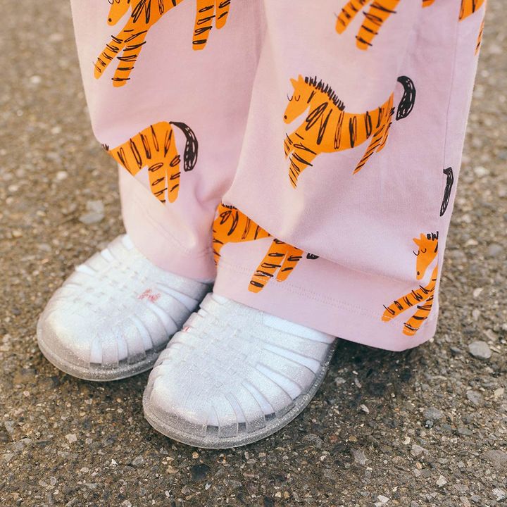 サンダル×ソックスで春ならではの足元スタイリング。きらめくグリッターが、セットアップコーデを軽やかに昇華!