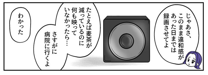 夫が同僚に相談したところ、本気で私のことを心配されてしまったとか。「もしかしたら奥さんが自分でお茶を飲んだ後、減ってるって驚いている映像が録れるんじゃないの」と言われたそうです。えぇ、原因は私なの……?