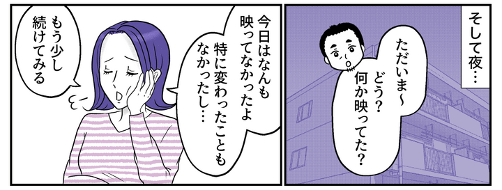 見守りカメラは充電式で、一度セットすると数時間の録画ができます。さっそくリビングの方向が映るように置いてみましたが、その日は何の異変も感じませんでした。すると夫が、私に向かって言いにくそうに話を切り出しました。
